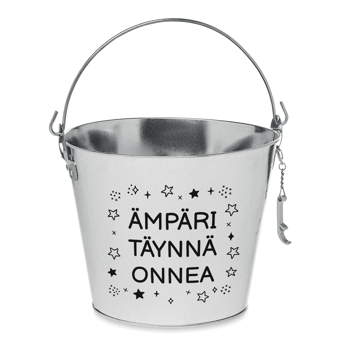 Ämpäri myydään tyhjänä, joten voit täyttää sen haluamallasi tavalla - juomilla, makeisilla, söpöillä rihkamakoruilla, pienillä lahjoilla tai jopa toivomusviesteillä. Se on loistava tapa luoda henkilökohtainen, lämmin ja ainutlaatuinen lahja.
