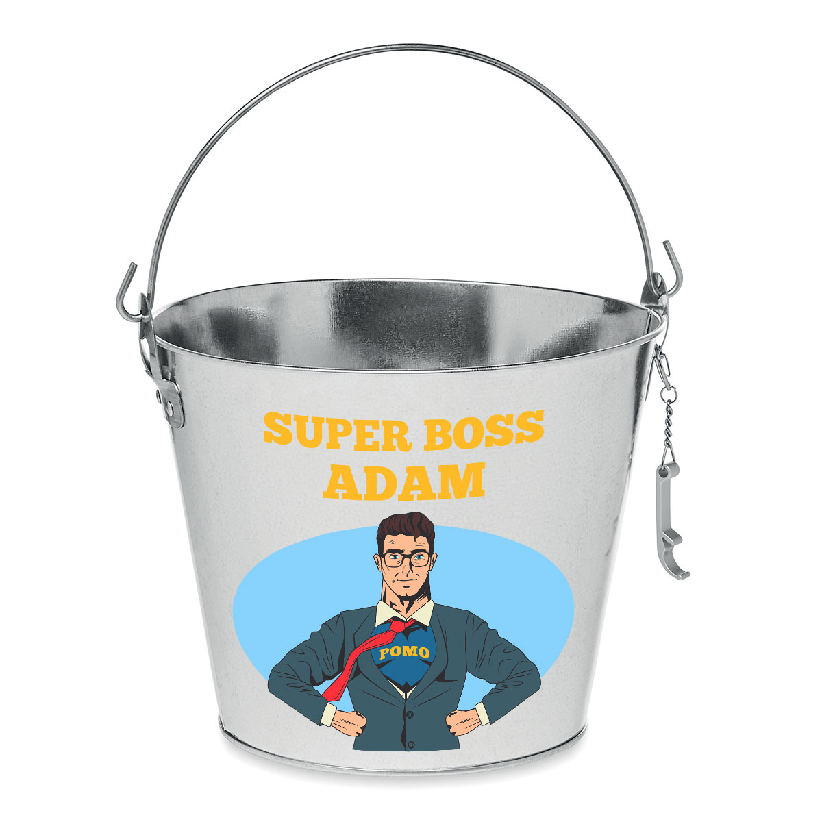 Ämpäri "Pomolle" valitsemallasi nimellä – hauska ja omaperäinen lahja pomolle!