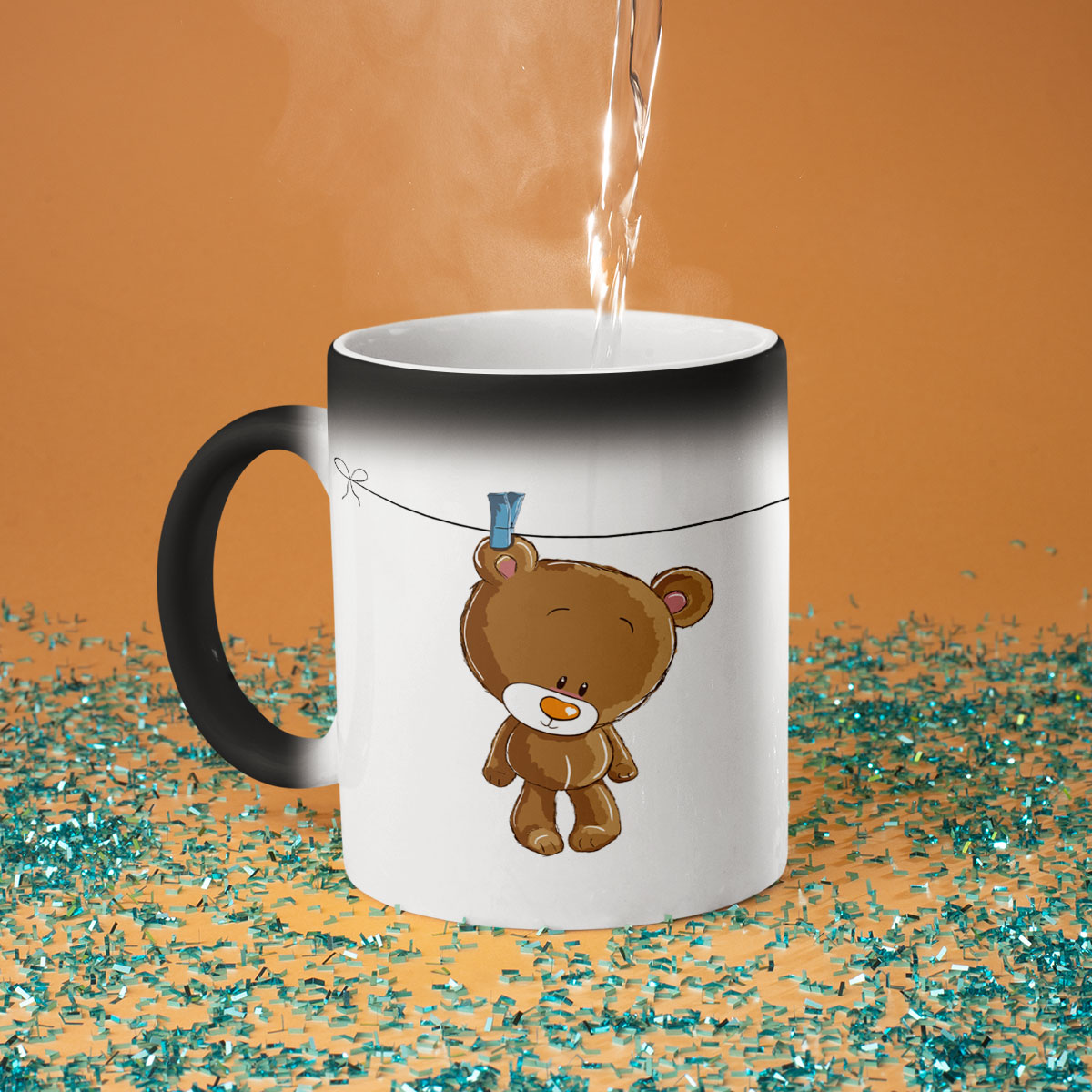 - Taikamuki – ei turhaan kutsuttu taikamukiksi! Ensi silmäyksellä se on yksinkertainen musta muki, mutta kun kuumaa vettä kaadetaan, se muuttuu valkoiseksi ja piilotettu painatus paljastuu. Se on todellinen yllätys ja pieni ihme jokaiseen päivään!