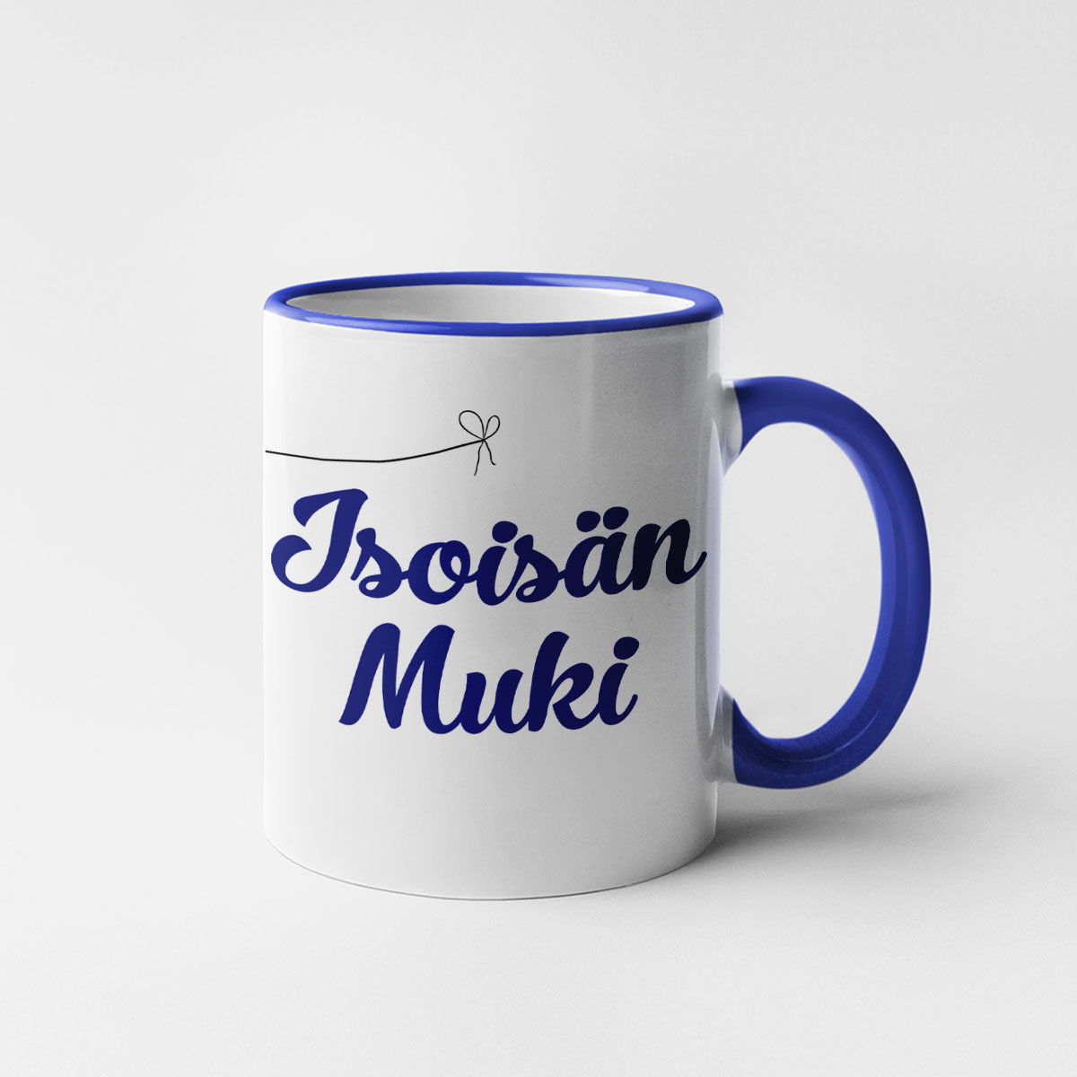 - Muki värillisellä reunalla – tämä malli erottuu tyylikkäällä muotoilullaan: hienovaraisesti värillinen reunus ja kahva, jotka antavat mukille leikkisyyttä ja korostavat täydellisesti ainutlaatuista tekstiä.