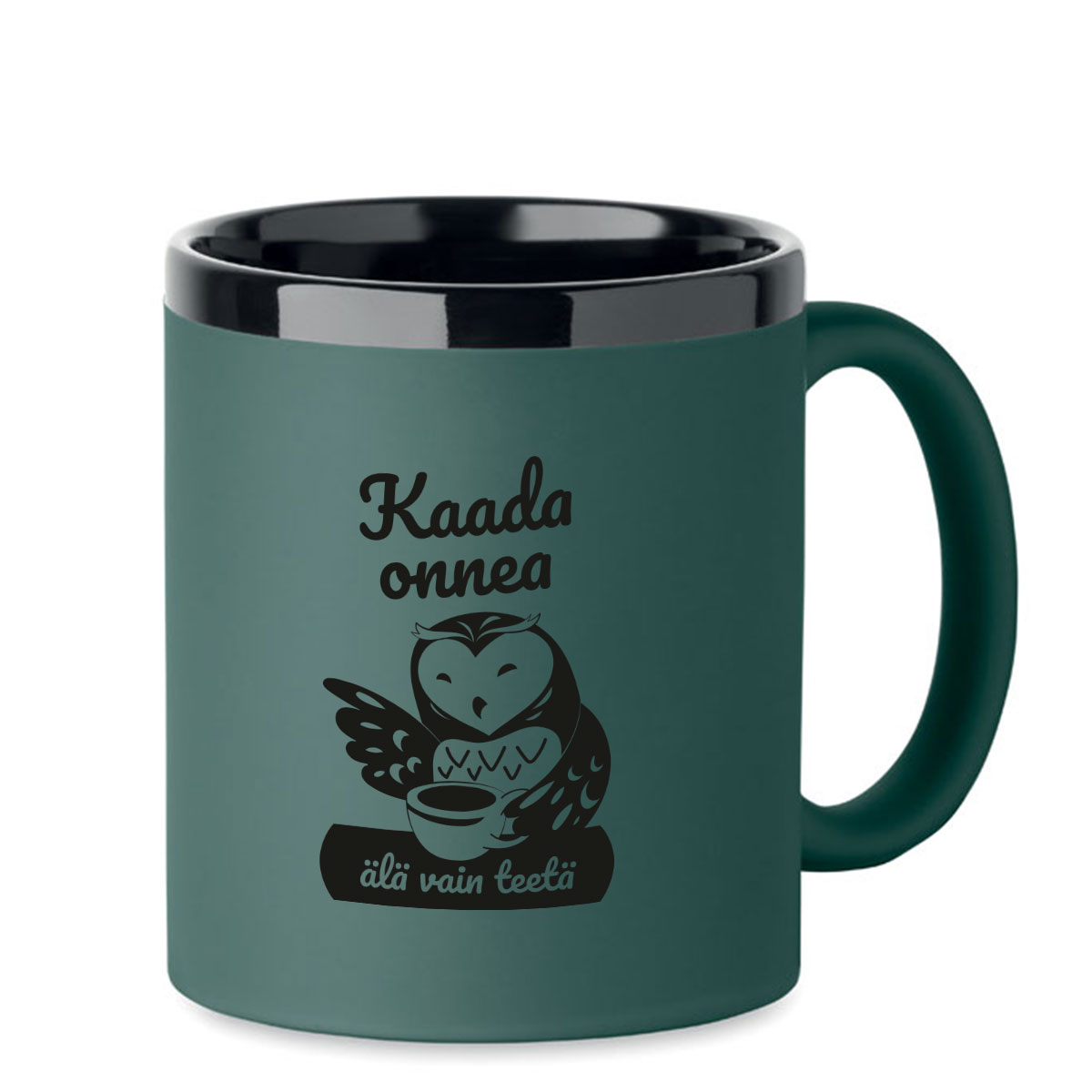 Kaiverrettu muki "Kaada onnea, älä vain teetä"
