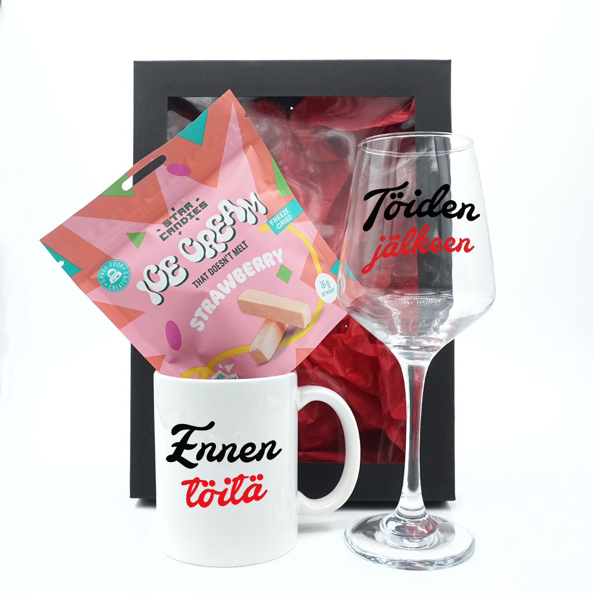 - Viinilasi "Töiden jälkeen" (400ml) - 1 kpl.