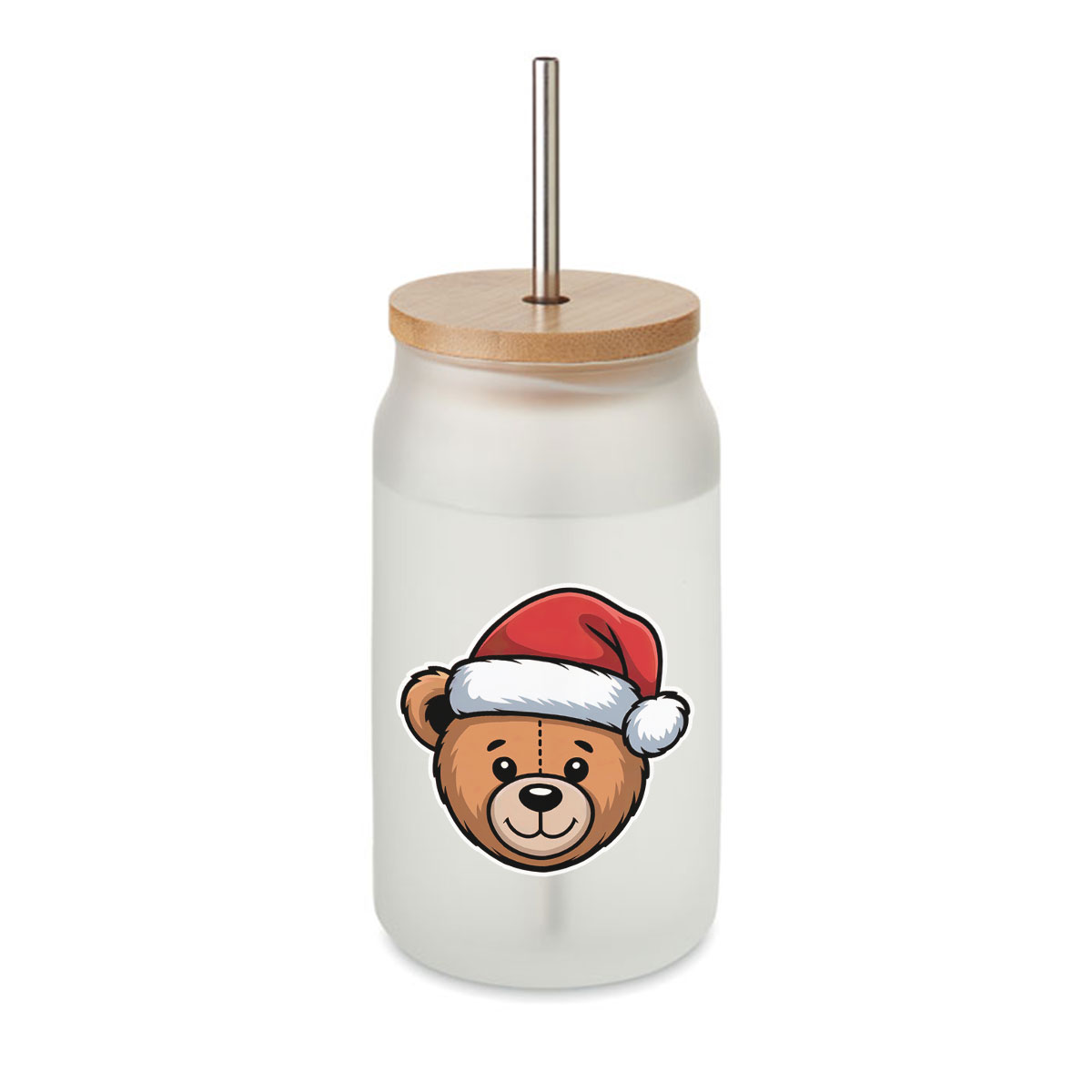 Lasinen juomapullo metallipillillä "Teddy bear" - kodikas valinta juhliin ja arkeen!