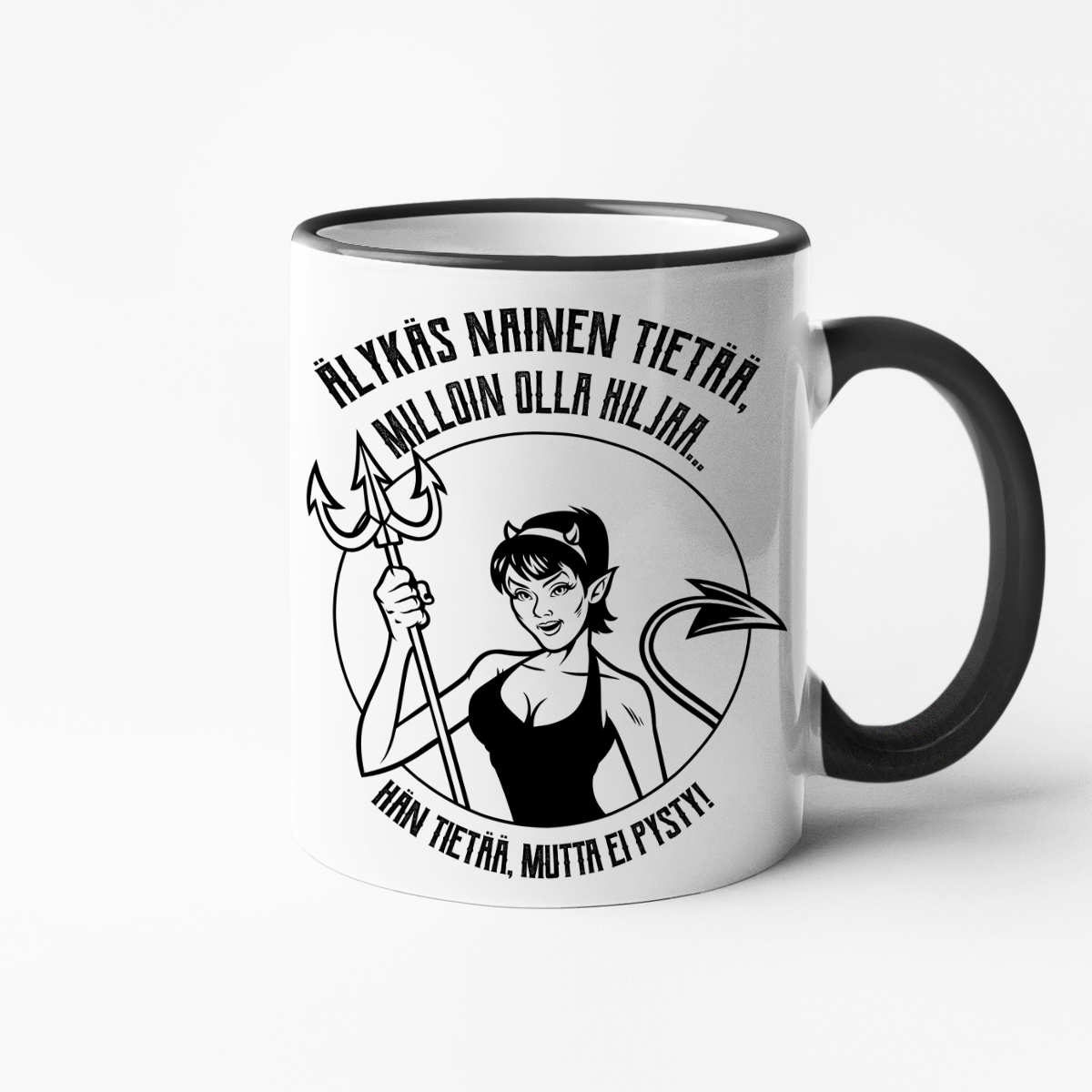 - Muki värillisellä reunalla – tämä malli erottuu tyylikkäällä muotoilullaan: hienovaraisesti värillinen reunus ja kahva, jotka antavat mukille leikkisyyttä ja korostavat täydellisesti ainutlaatuista tekstiä.
