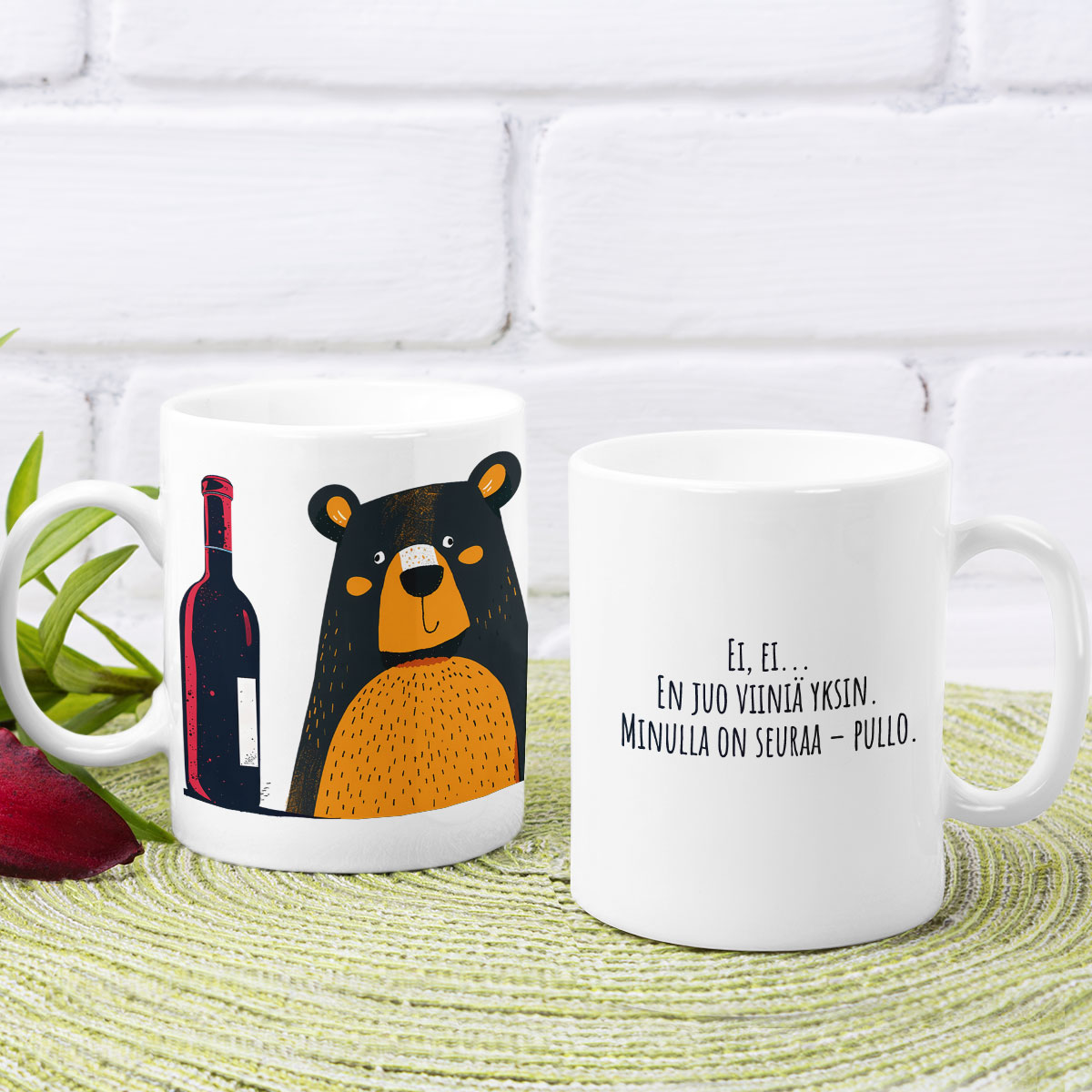 Kirjoitus on sijoitettu mukin molemmille puolille, joten se näkyy sekä sinulle että kaikille ympärillä oleville.