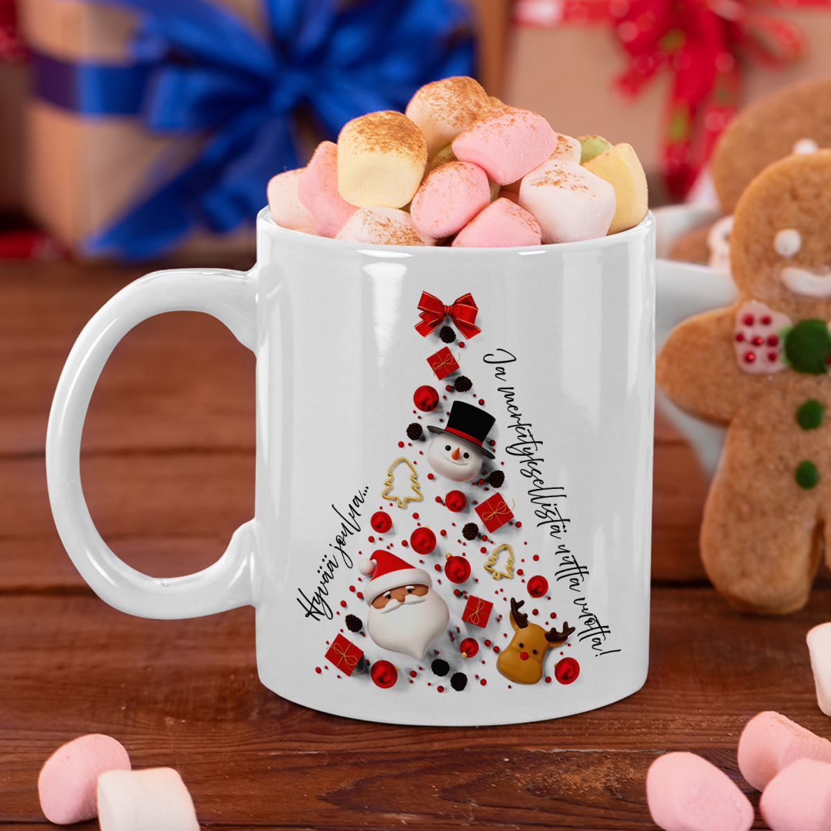 Valitse kolmesta eri mukimallista:- Yksinkertainen valkoinen muki – klassinen ja universaali malli, joka sopii täydellisesti kaikkiin tilaisuuksiin tai sisustukseen.