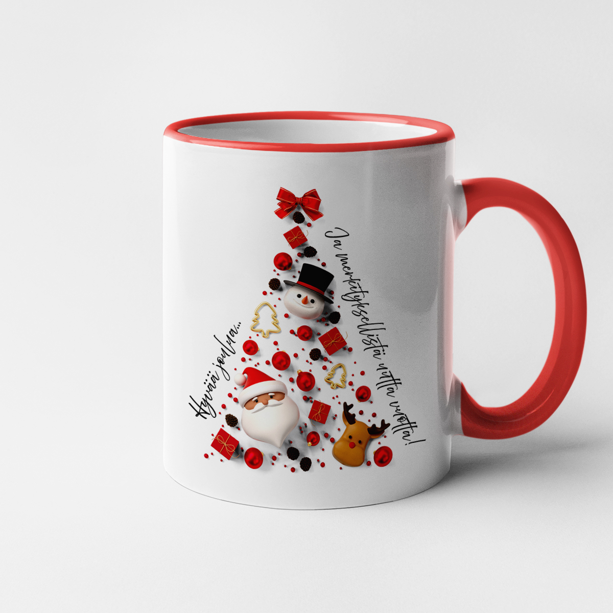 - Muki värillisellä reunalla – tämä malli erottuu tyylikkäällä muotoilullaan: hienovaraisesti värillinen reunus ja kahva, jotka antavat mukille leikkisyyttä ja korostavat täydellisesti ainutlaatuista tekstiä.