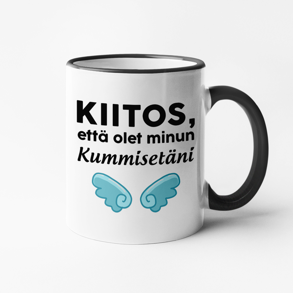 - Muki värillisellä reunalla – tämä malli erottuu tyylikkäällä muotoilullaan: hienovaraisesti värillinen reunus ja kahva, jotka antavat mukille leikkisyyttä ja korostavat täydellisesti ainutlaatuista tekstiä.