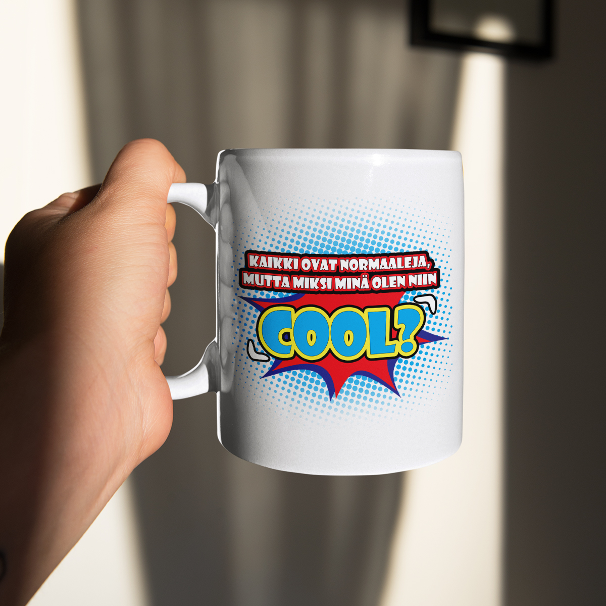 Valitse kolmesta eri mukimallista:- Yksinkertainen valkoinen muki – klassinen ja universaali malli, joka sopii täydellisesti kaikkiin tilaisuuksiin tai sisustukseen.