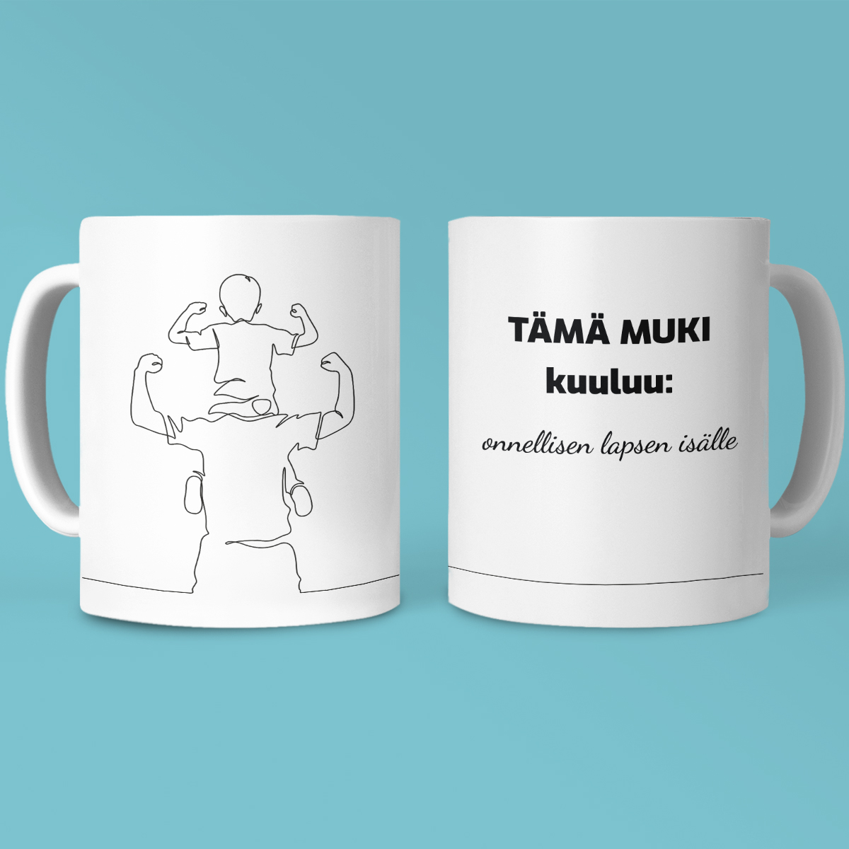 Kirjoitus on sijoitettu mukin molemmille puolille, joten se näkyy sekä sinulle että kaikille ympärillä oleville.