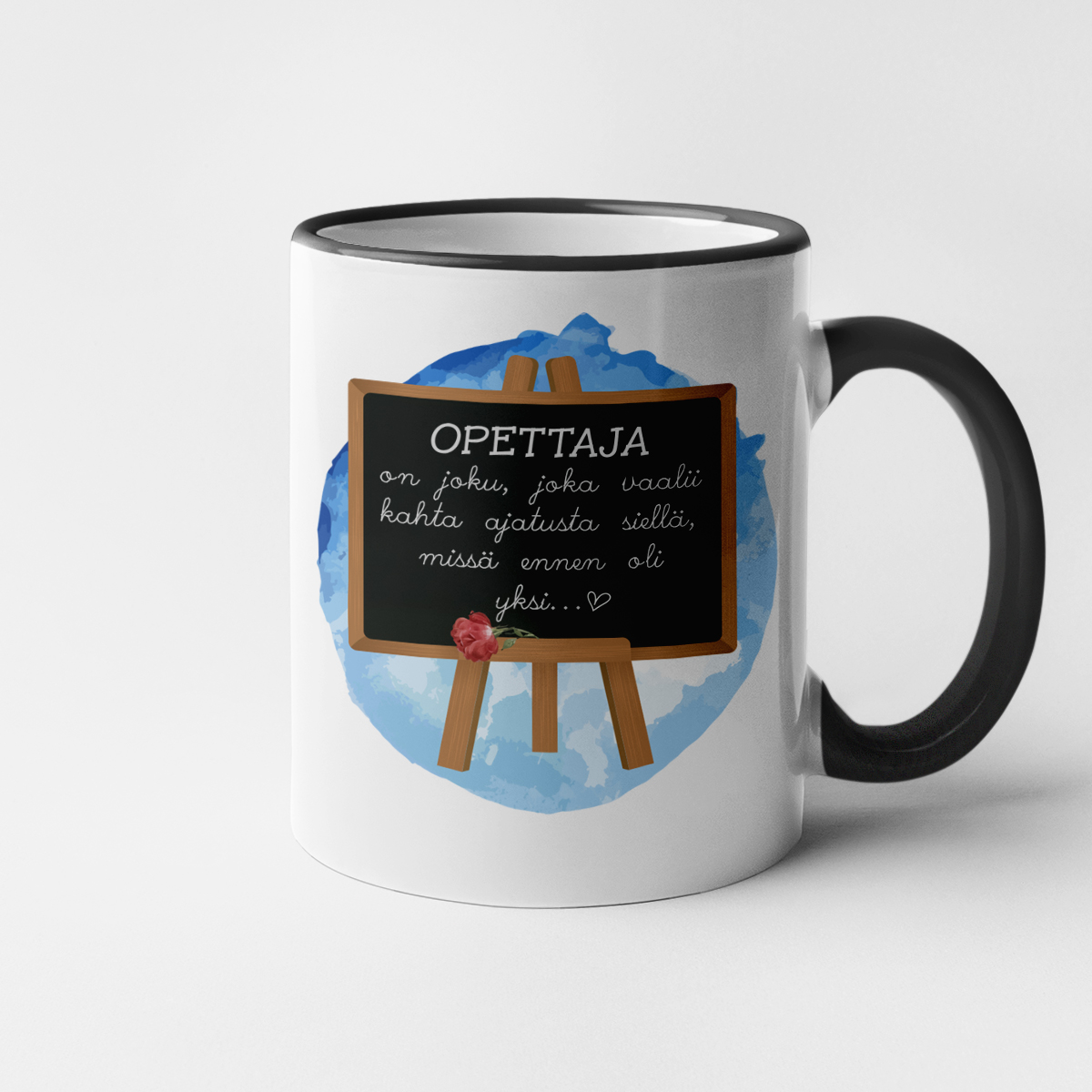 - Muki värillisellä reunalla – tämä malli erottuu tyylikkäällä muotoilullaan: hienovaraisesti värillinen reunus ja kahva, jotka antavat mukille leikkisyyttä ja korostavat täydellisesti ainutlaatuista tekstiä.