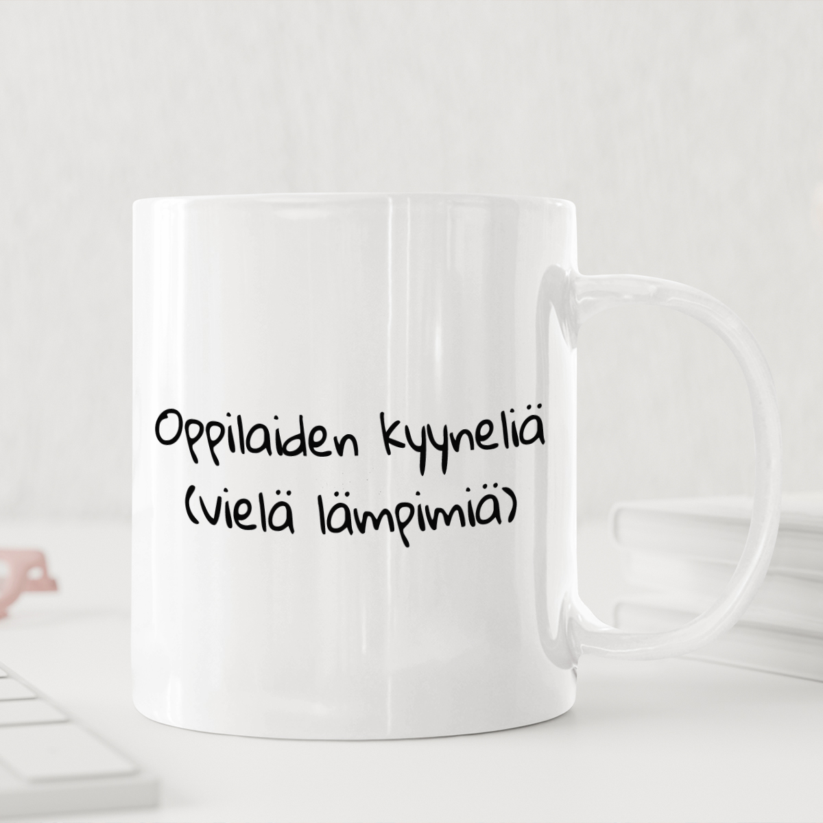 Valitse kolmesta eri mukimallista:- Yksinkertainen valkoinen muki – klassinen ja universaali malli, joka sopii täydellisesti kaikkiin tilaisuuksiin tai sisustukseen.