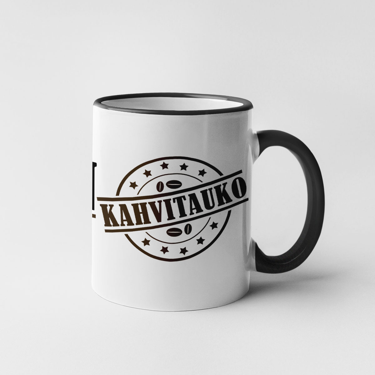 - Muki värillisellä reunalla – tämä malli erottuu tyylikkäällä muotoilullaan: hienovaraisesti värillinen reunus ja kahva, jotka antavat mukille leikkisyyttä ja korostavat täydellisesti ainutlaatuista tekstiä.