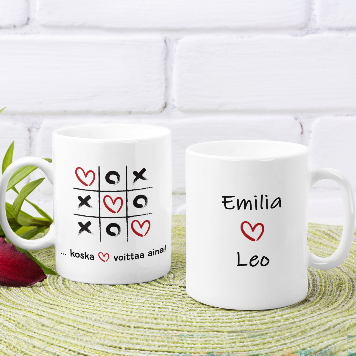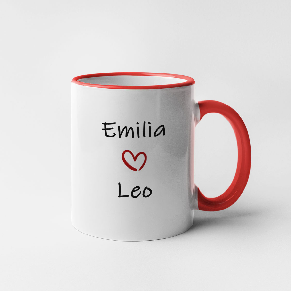 - Muki värillisellä reunalla – tämä malli erottuu tyylikkäällä muotoilullaan: hienovaraisesti värillinen reunus ja kahva, jotka antavat mukille leikkisyyttä ja korostavat täydellisesti ainutlaatuista tekstiä.