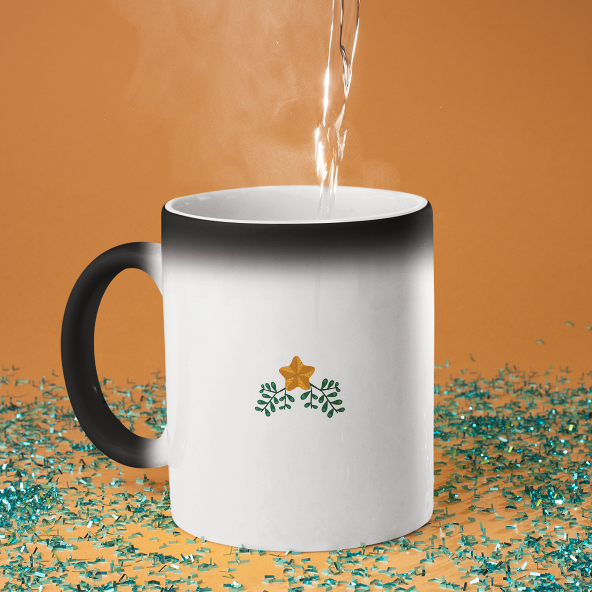 - Taikamuki – ei turhaan kutsuttu taikamukiksi! Ensi silmäyksellä se on yksinkertainen musta muki, mutta kun kuumaa vettä kaadetaan, se muuttuu valkoiseksi ja piilotettu painatus paljastuu. Se on todellinen yllätys ja pieni ihme jokaiseen päivään!