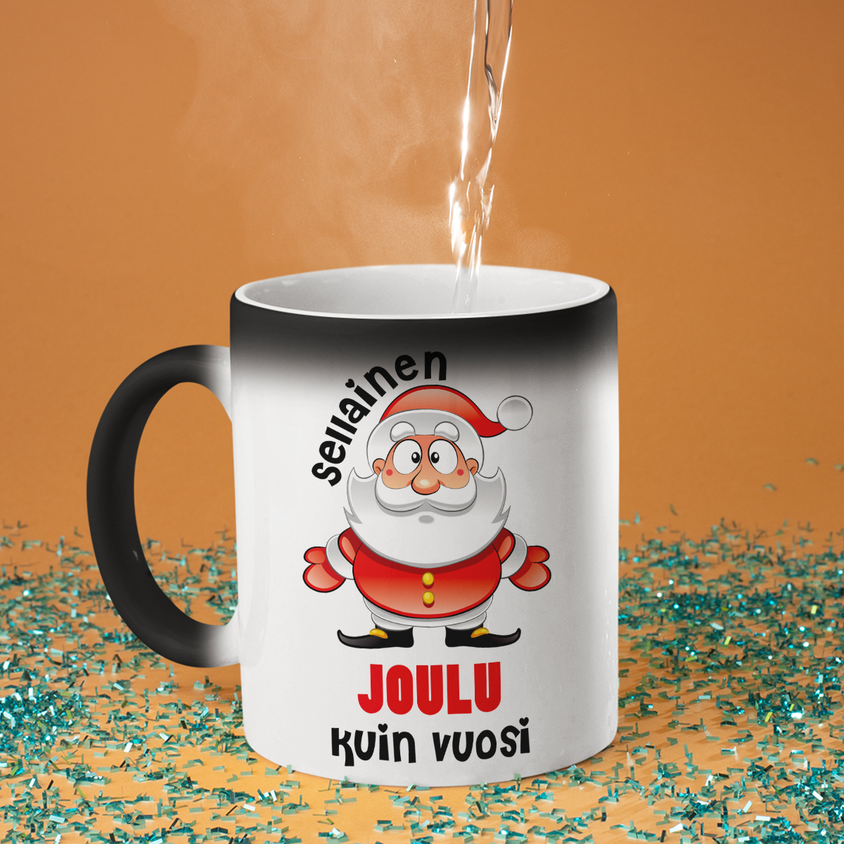 - Taikamuki – ei turhaan kutsuttu taikamukiksi! Ensi silmäyksellä se on yksinkertainen musta muki, mutta kun kuumaa vettä kaadetaan, se muuttuu valkoiseksi ja piilotettu painatus paljastuu. Se on todellinen yllätys ja pieni ihme jokaiseen päivään!
