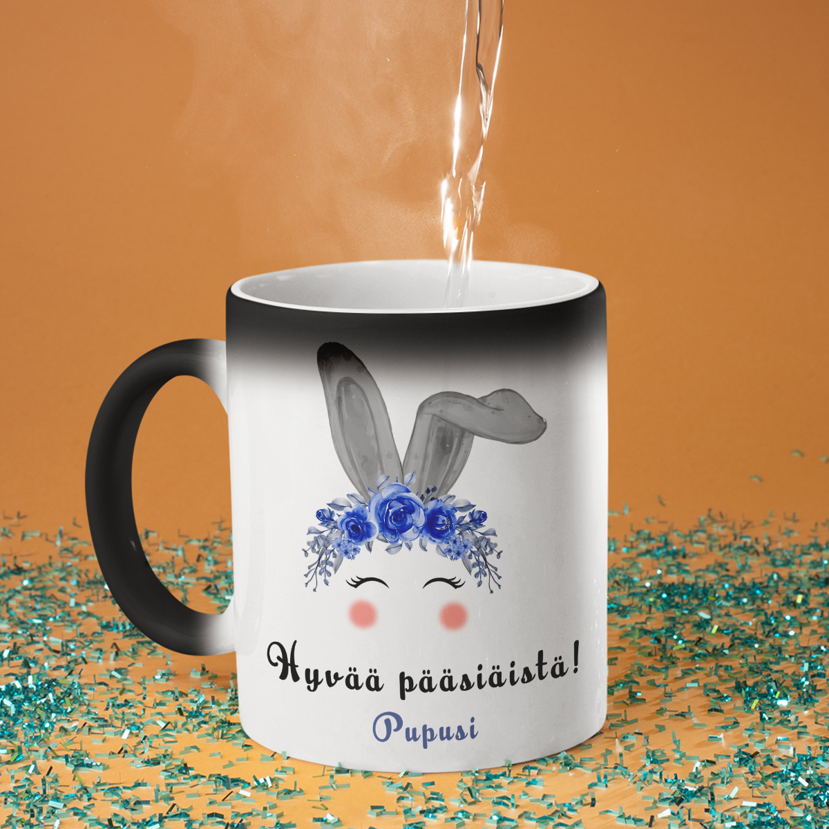 - Taikamuki – ei turhaan kutsuttu taikamukiksi! Ensi silmäyksellä se on yksinkertainen musta muki, mutta kun kuumaa vettä kaadetaan, se muuttuu valkoiseksi ja piilotettu painatus paljastuu. Se on todellinen yllätys ja pieni ihme jokaiseen päivään!