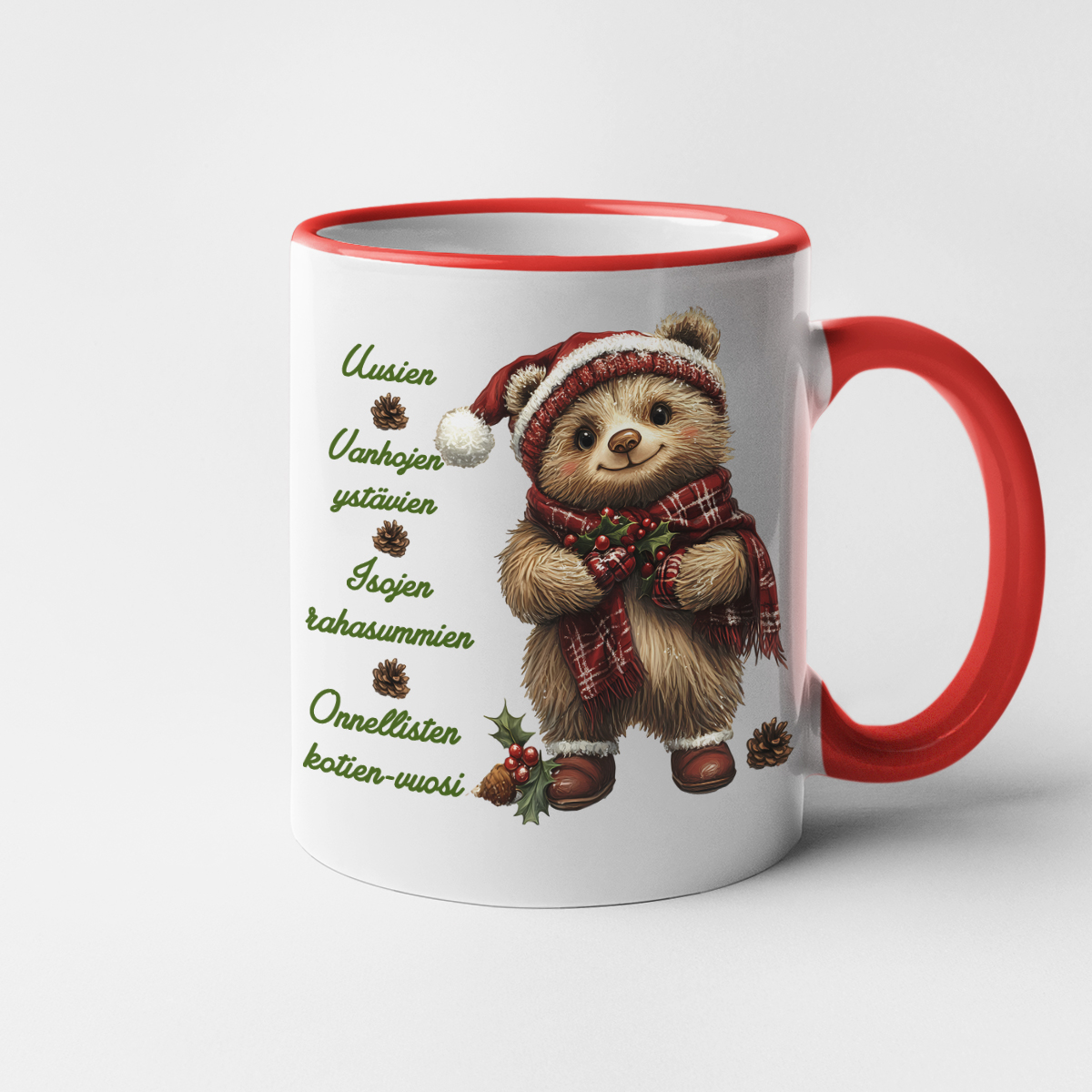 - Muki värillisellä reunalla – tämä malli erottuu tyylikkäällä muotoilullaan: hienovaraisesti värillinen reunus ja kahva, jotka antavat mukille leikkisyyttä ja korostavat täydellisesti ainutlaatuista tekstiä.