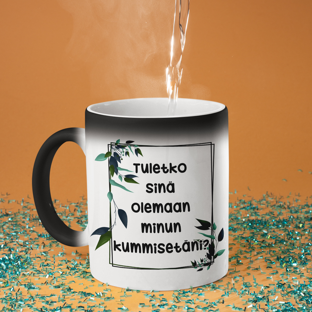 - Taikamuki – ei turhaan kutsuttu taikamukiksi! Ensi silmäyksellä se on yksinkertainen musta muki, mutta kun kuumaa vettä kaadetaan, se muuttuu valkoiseksi ja piilotettu painatus paljastuu. Se on todellinen yllätys ja pieni ihme jokaiseen päivään!