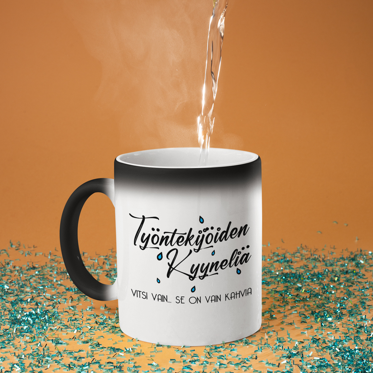 - Taikamuki – ei turhaan kutsuttu taikamukiksi! Ensi silmäyksellä se on yksinkertainen musta muki, mutta kun kuumaa vettä kaadetaan, se muuttuu valkoiseksi ja piilotettu painatus paljastuu. Se on todellinen yllätys ja pieni ihme jokaiseen päivään!