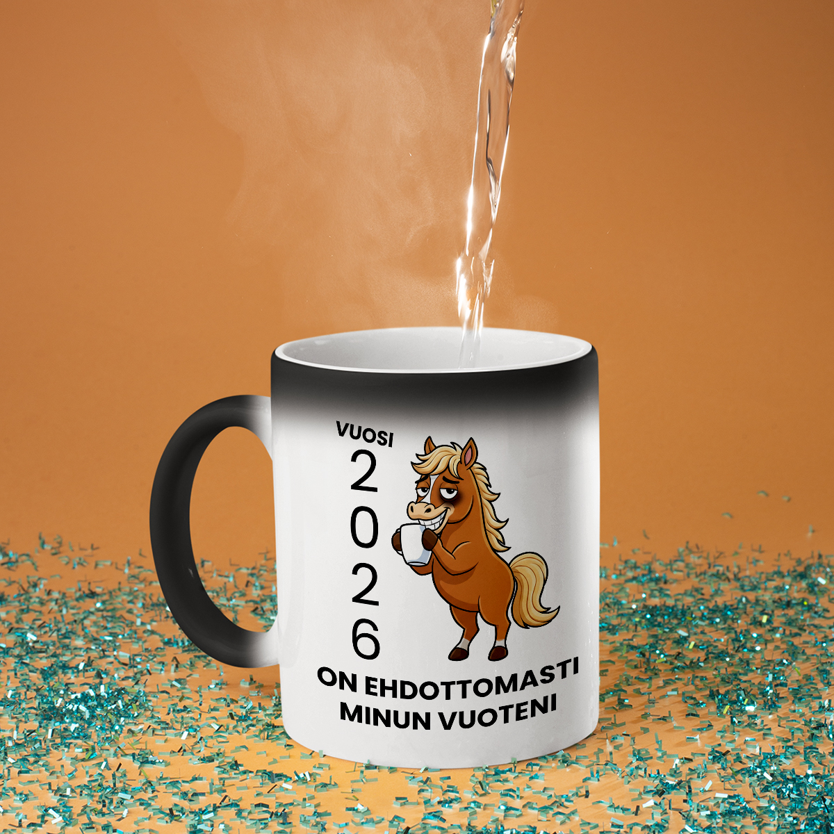 - Taikamuki – ei turhaan kutsuta taianomaiseksi! Ensi silmäyksellä se näyttää yksinkertaiselta mustalta mukilta, mutta kun siihen kaadetaan kuumaa vettä, se muuttuu valkoiseksi ja piilotettu painatus paljastuu. Todellinen yllätys ja pieni ihme jokaiseen päivään!
