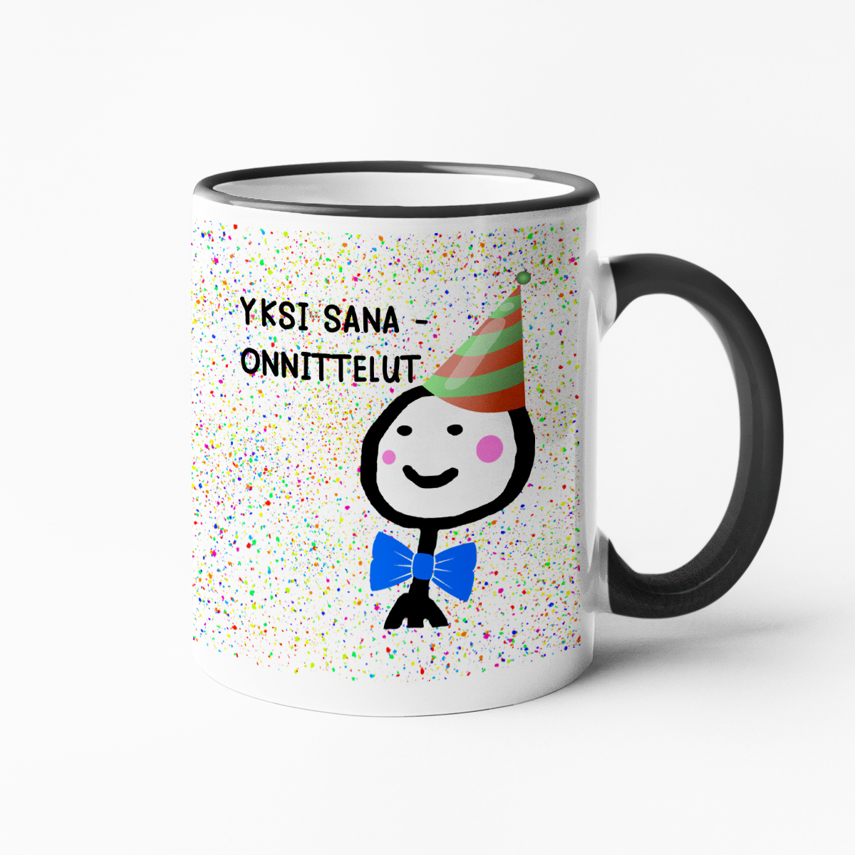 - Muki värillisellä reunalla – tämä malli erottuu tyylikkäällä muotoilullaan: hienovaraisesti värillinen reunus ja kahva, jotka antavat mukille leikkisyyttä ja korostavat täydellisesti ainutlaatuista tekstiä.