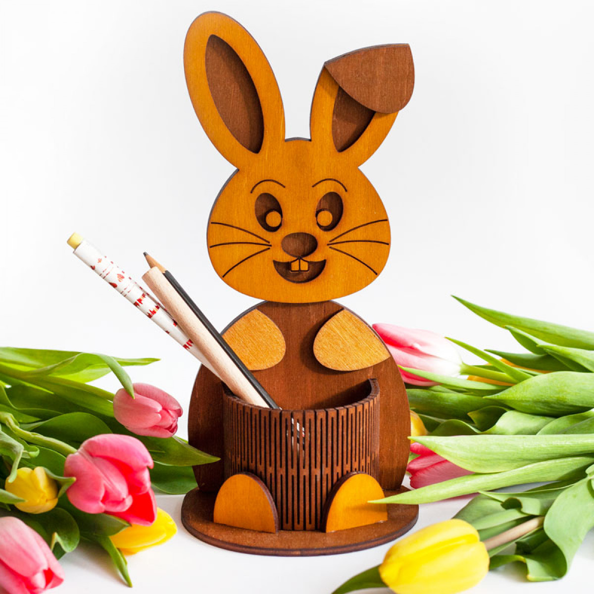 Puinen munateline pupukoristeella - upea koriste juhlapöytääsi! Tämä teline on todella käytännöllinen, sillä pääsiäisen jälkeen sinun ei tarvitse odottaa vuotta käyttääksesi sitä uudelleen. Voit ehdottomasti käyttää tätä telinettä muille tavaroille, kuten makeisille, lyijykynille ja muille pienille tavaroille.