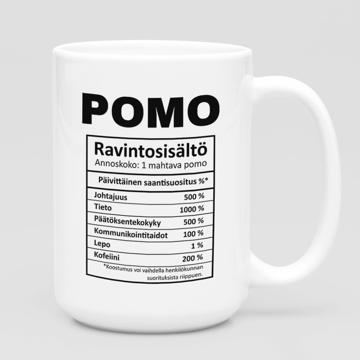 XL-kuppi, jossa on yksinoikeudella muotoiltu "Pomon koostumus".